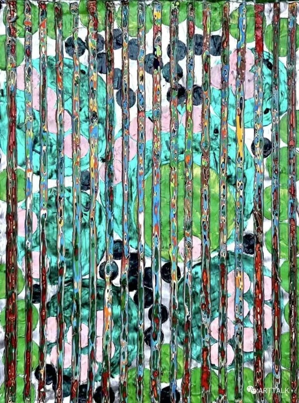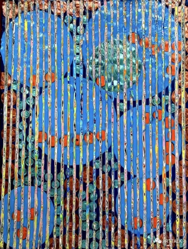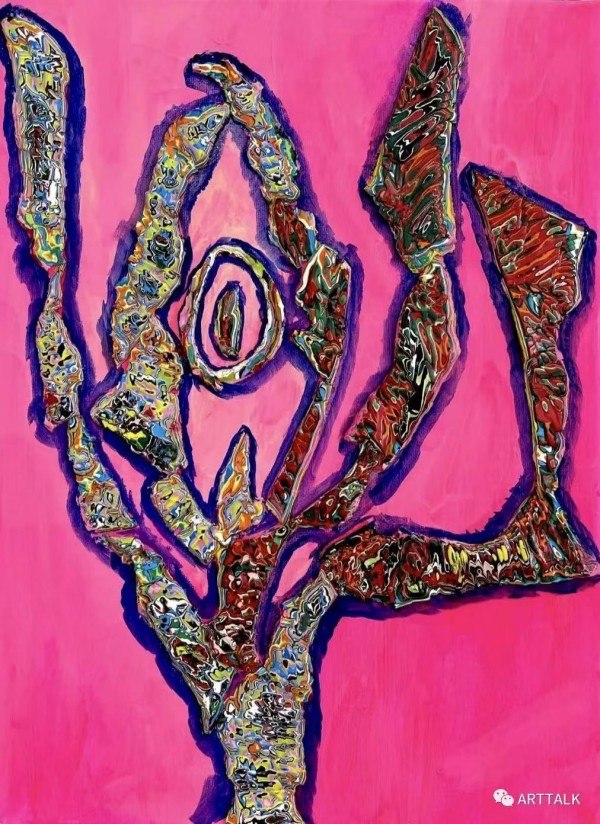 有些人的人生,一生都在进行一项叫做“构图”的工作。仍是康定斯基,他说:“形象和色彩的美,就其本身来说并没有任何意义;而构图一词,才在精神上感动了我。这个词语就像虔诚的祈祷文一样影响着我,使我充满敬畏之心。”( 引自哈罗德·奥斯伯格Harold Rosenberg 的« 康定斯基与抽象艺术 »)他认为他在构图绘画时,总能听到一个声音,他把它叫做画面的“内在音响”。而无论是图形之间,还是色彩的组织之间,都是靠艺术家内在情感的杠杆来调节的,这就是康定斯基所称的“隐蔽结构”,即一种建筑在纯精神基础上的结构。这让我想起袁梅总跟我说起的,她常常会突然半夜一时兴起,爬起来去画画或弄作品,全然不觉时间流逝的日常。我相信,对于一个跨越近半个世纪的,尝试过各种行业的,以不同的方式表达其生命语言的人来说,她已经积攒和备足了材料,将它们钩织或构置在一个她所要表达的视觉世界里,去完成从生活素材到绘画语言的转变,并成功地将自己的生活和内心世界化为自然物象与绘画语言之间的纽带。袁梅的状态让我再次肯定,艺术家的内心生活,才是其所处的时代和社会环境,以及他个人生活经历的全部烙印引入到其绘面语言中的枢纽。袁梅那些丰富多彩然而也可能一地鸡毛的,又或许犹如过山车一般的生活和由此生成的内心世界,就是这样润物细无声地被引入到她对艺术创作的处理方式中,那些艳丽的色彩和随心所欲的图形是她对所处的生活背景和过往经历的最佳应答。她按照自己内心的呼声来处理自己的绘画语言,而“构图”则是一挥而就,因为它们已经酝酿了数十年,那里是她存放整个人生的百宝箱。
