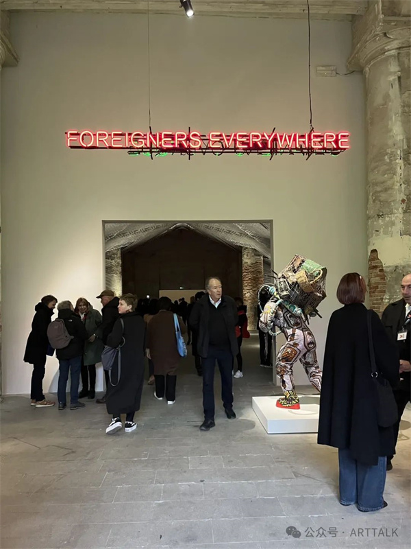 截止于此,汉语世界对于此届威尼斯双年展的“主题”都没有一个明确的翻译和文本解读。按照字面的翻译,无论是西班牙语、葡萄牙语、法语还是意大利语,étranger都有外乡人,陌生人,奇怪的人,居无定所或无家可归的人的多层含义;而每次的词意则必须根据不同的语境来定义。那么,“处处都是外乡人”,到底是指“外乡人到处都是”,还是”自己在哪儿都感觉是个外乡人”?或许两层意思都有。主语的切换显然将这句话所指向的意义拉到了两个完全不同的境地中。如果我们先从意大利近年来的政治风向标略观一二的话,我们可能更容易理解第一个解释。这也正是今年这场“艺术奥林匹克”从一开始并处在无硝烟之战的风口浪尖的主导原因。