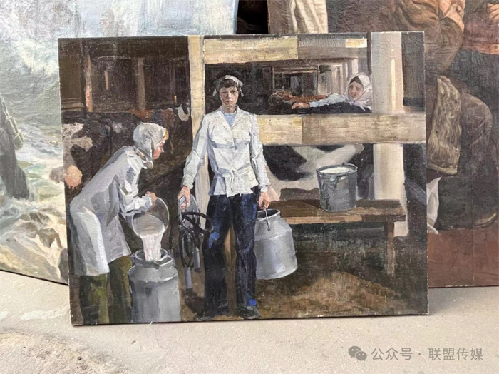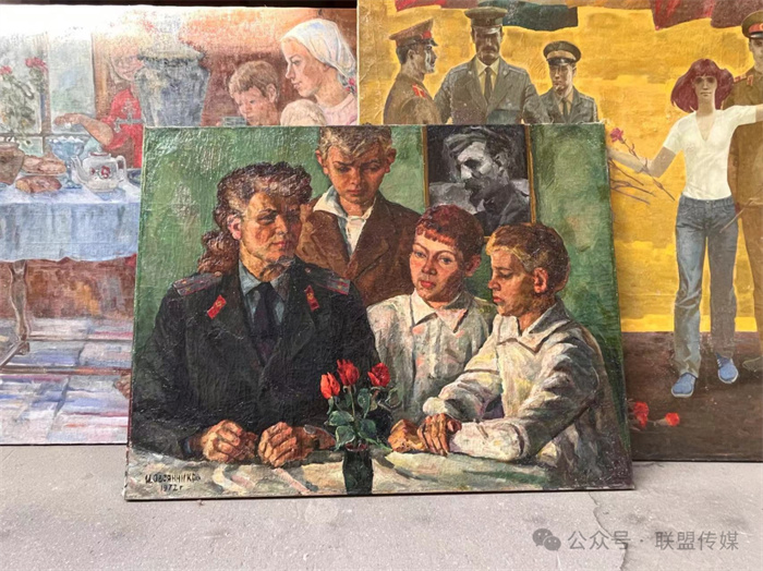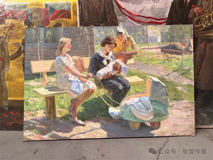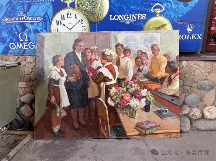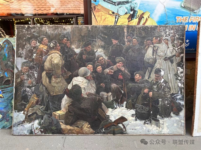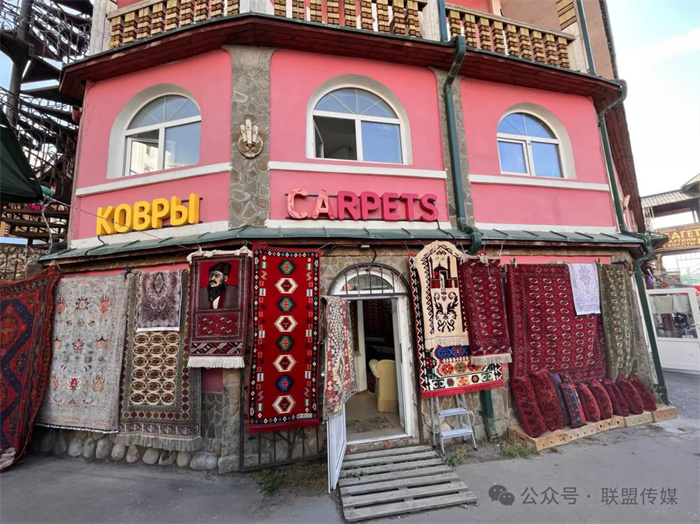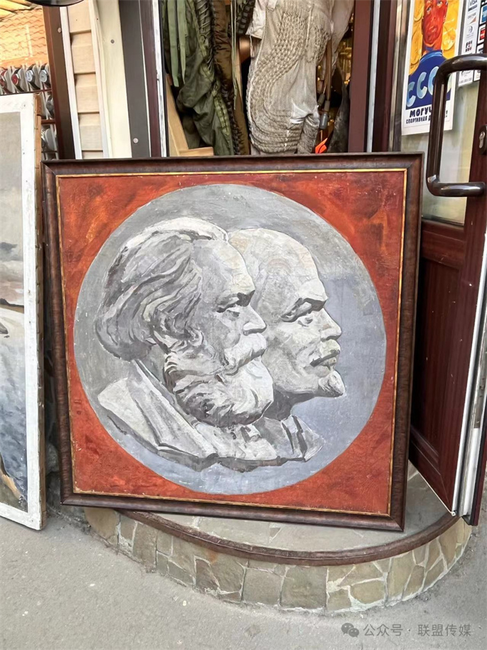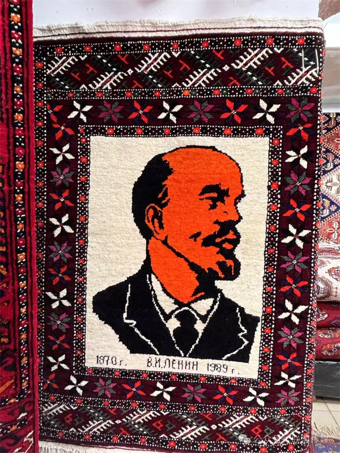 当我和谢尔盖约定了汇合的时间和地点后,即独立开始了“淘宝”行动。我先是随手拍了店铺门前的一些比较感兴趣的俄罗斯油画——题材大都是以苏联时期的居多,或许里面亦有苏联时期创作的作品吧(图1至图7)。当我信步走进地毯商店(图8)里,又在五彩斑斓的地毯中发现了苏联时期的“影子”(图9)。