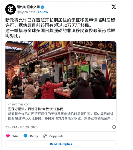 马德里科米亚斯宗座大学移民问题研究所研究员塞西莉亚·埃斯特拉达·比亚塞尼奥尔表示:“在当前国际反移民言论甚嚣尘上的大背景下,西班牙的这一决定成为一股制衡的力量。”